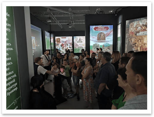 Украинские переселенцы посетили исторический парк «Россия — моя история». Участники мероприятия погрузились в богатую правовую культуру нашей страны. Посетили экскурсию, посвящённую истории российского государства, проверили свои знания в тематических викторинах. В то время как взрослые изучали интерактивные форматы выставки, юные посетители увлечённо занимались изготовлением «Игрушки России» и получили красочные рисунки главных символов страны в технике аквагрим. Завершилась экскурсия просмотром исторического фильма вкупольном кинозале, который транслирует фильм на потолке.