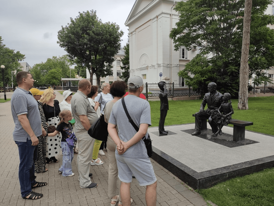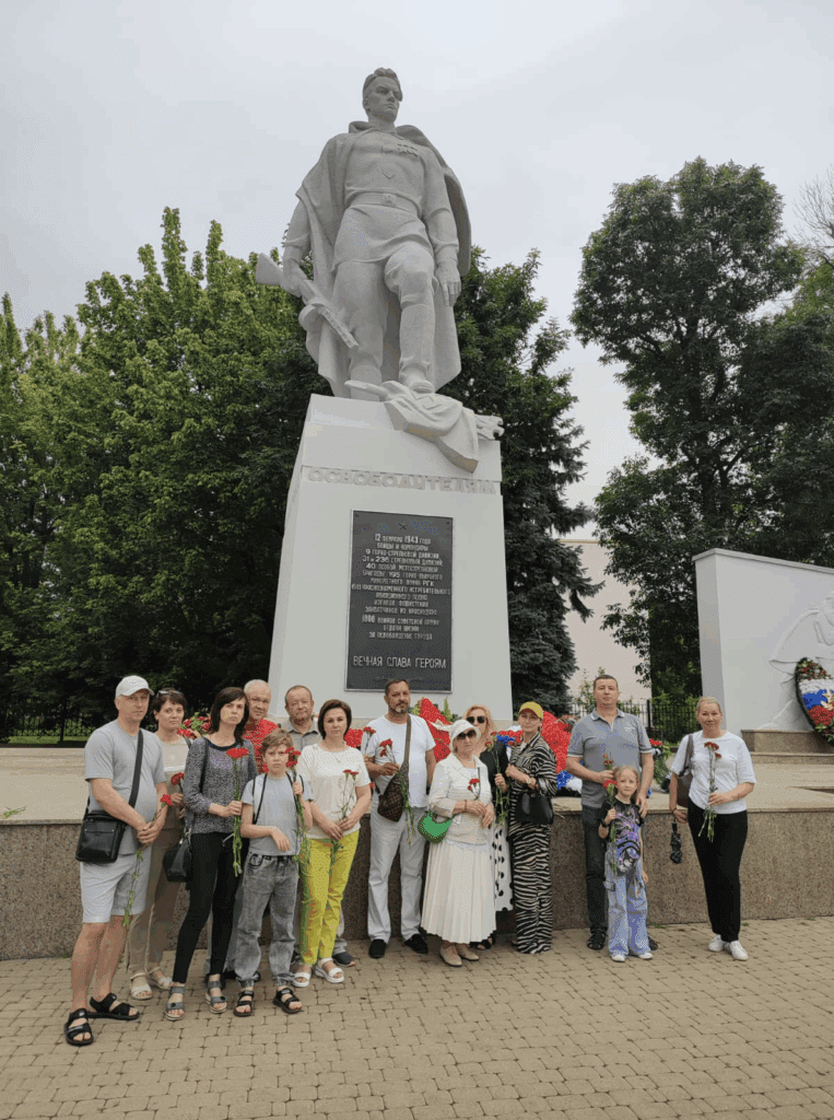 Завершилась экскурсия на Площади Победы у памятника Воинам-освободителям. Память павших защитников почтили минутой молчания и возложением цветов.