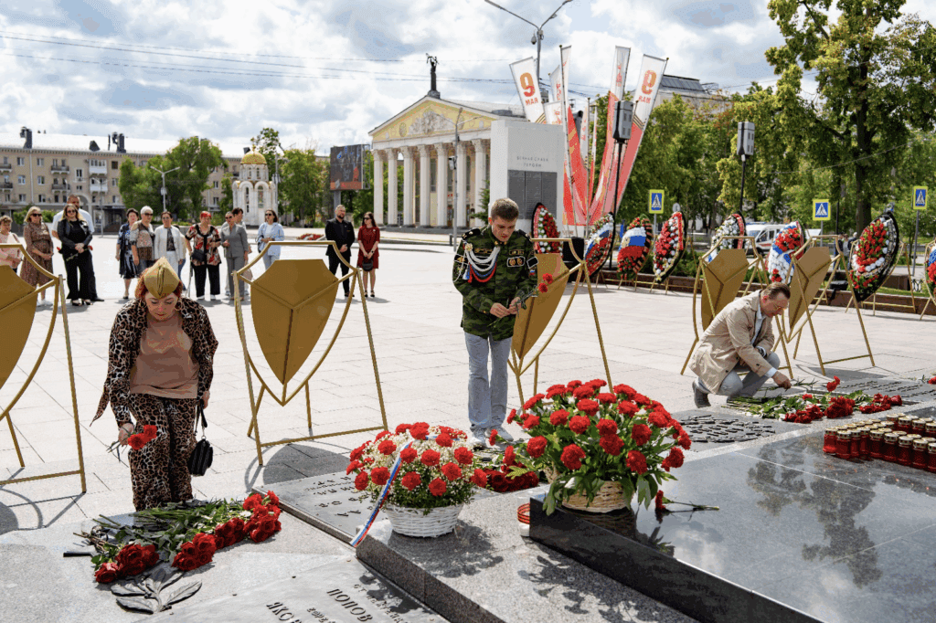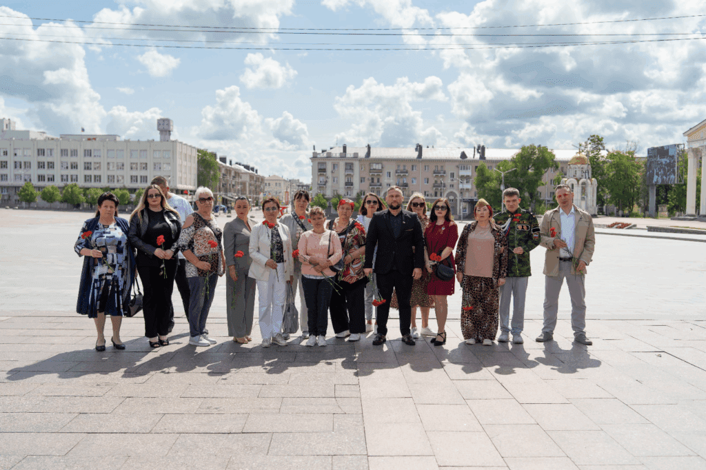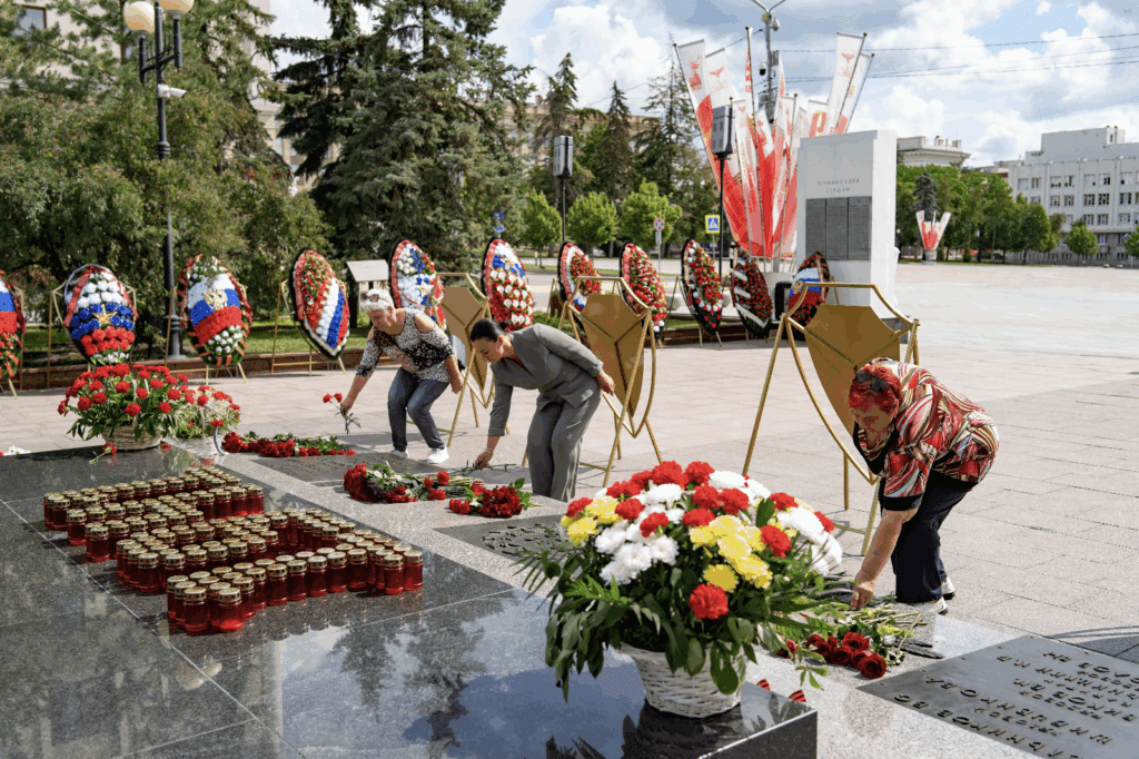 Участники зажгли Свечу Памяти, возложили цветы у Вечного огня на Соборной площади, почтили память ушедших минутой молчания…