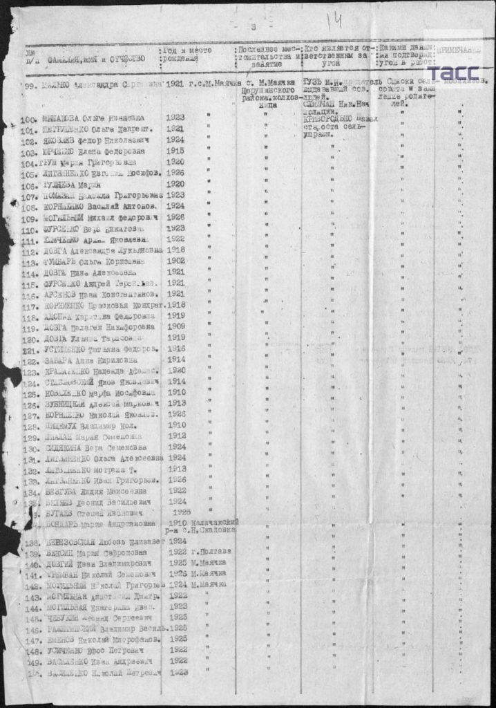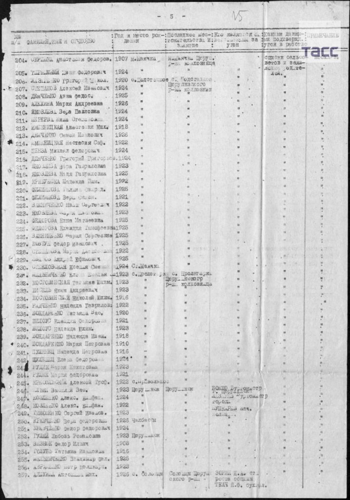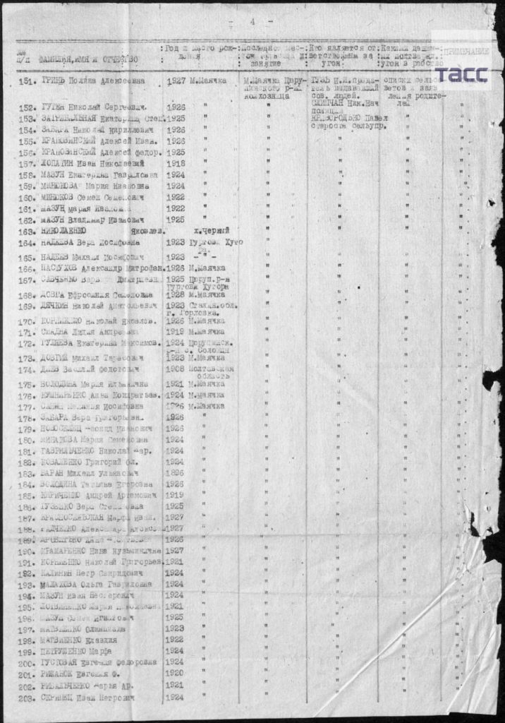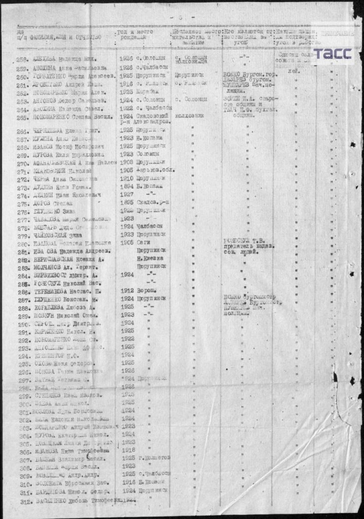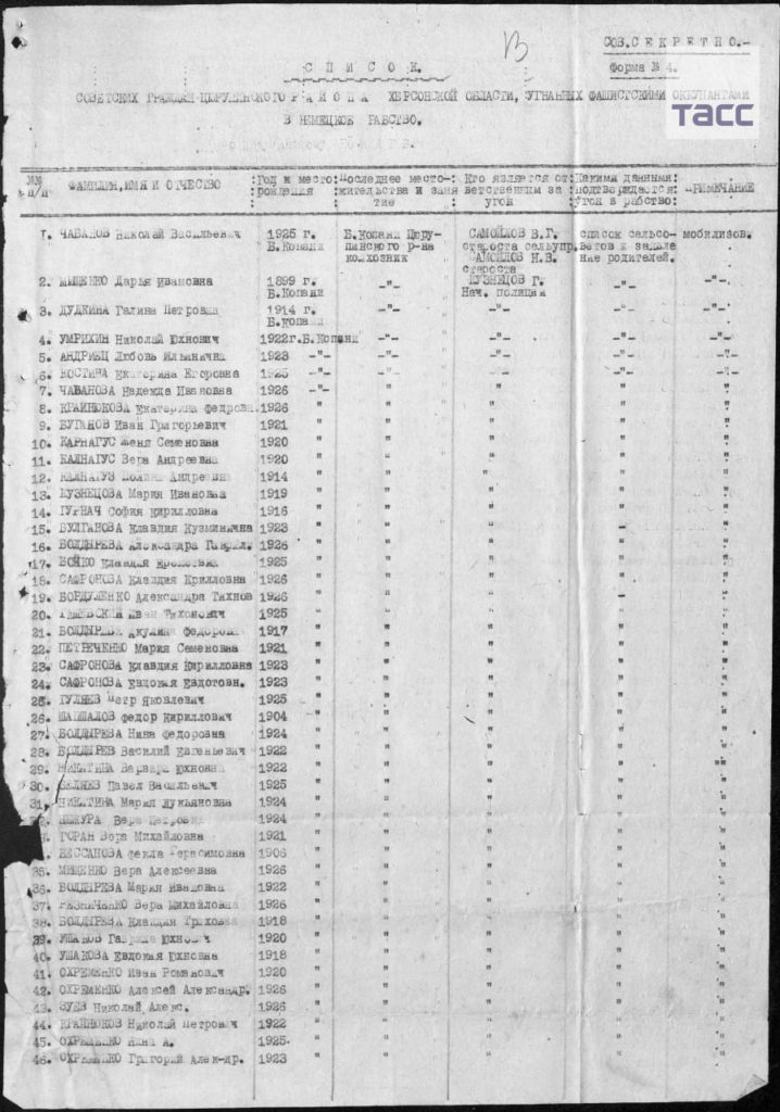 Управление ФСБ располагает списком 356 мирных жителей Цюрупинского (ныне Алёшкинского) района, угнанных в рабство.
