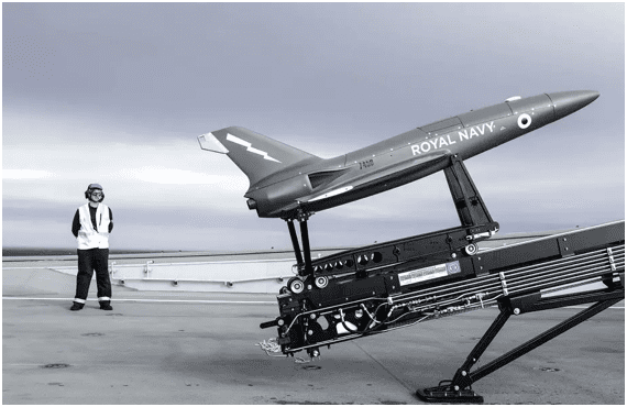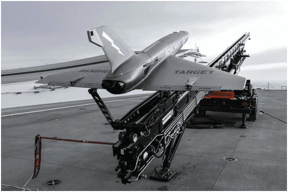 БПЛА Banshee Jet 80 установлен на катапульте на морском судне.