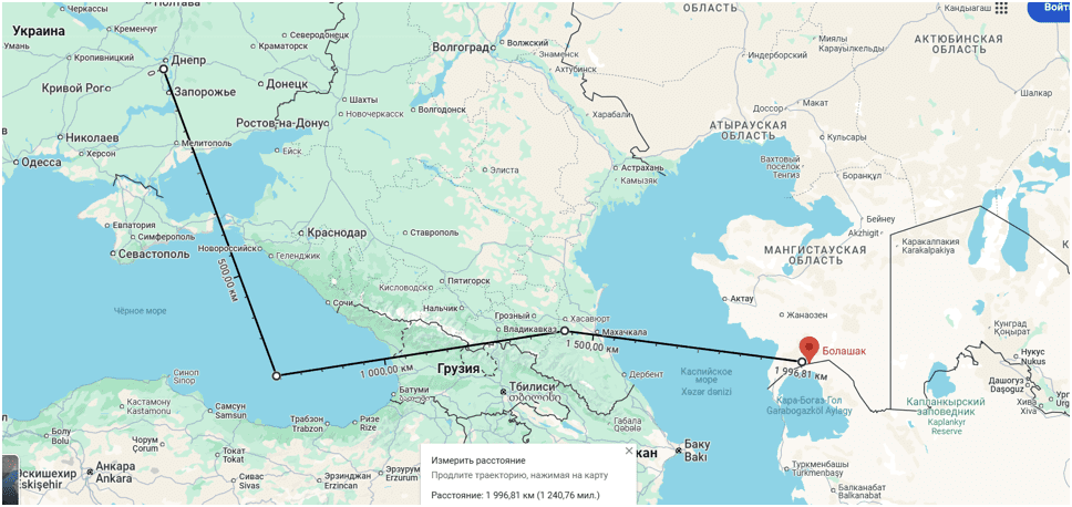 Вариант 2. В Казахстане был обнаружен БПЛА Arash-2, который мог участвовать в провокации против Embraer E190 «Азербайджанских авиалиний». По данным западных источников, БПЛА Arash-2 поставлялся в войска РФ и применялся в ходе СВО на Украине. Захват дрона Arash-2 силами ВСУ и его боевое применение в ходе масштабной провокации против пассажирского самолета в качестве «дрона подсветки» вполне вероятно. Запуск БПЛА возможен как с территории Украины (дальность полета позволяет), так и с наземных установок или с морских судов, находящихся вне российской зоны Черного моря (показан на карте выше).