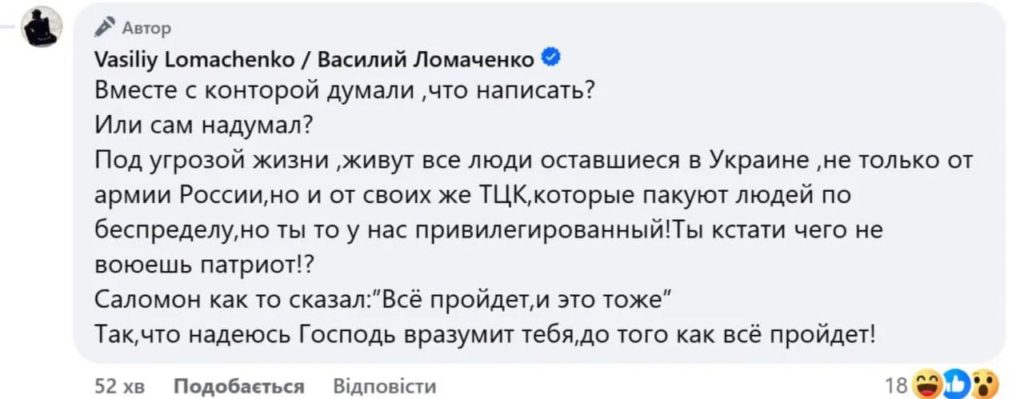 Ломаченко также заявил, что их комментарии готовили украинские спецслужбы и напомнил, что на Украине ежедневно больше граждан гибнут не от ракет, а в результате принудительной мобилизации и действий ТЦК.