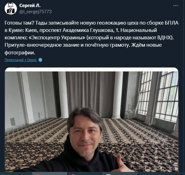 Несколько дней назад украинский волонтёр и общественный деятель Сергей Притула опубликовал фотографию, на которой виден склад боевых БПЛА на территории Национального экспоцентра «Украина».