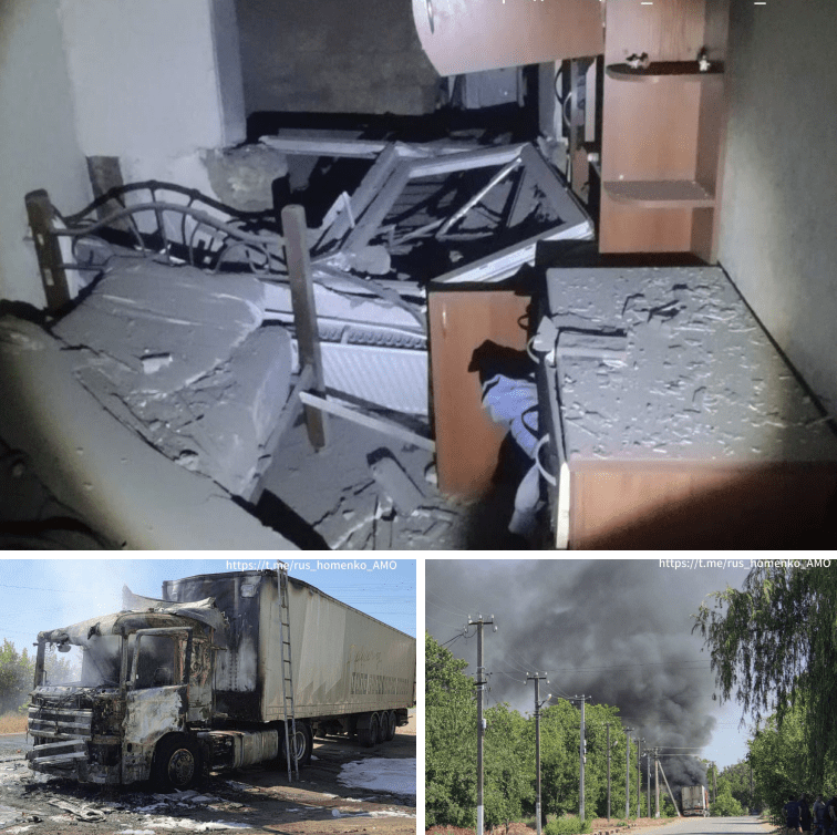В результате атак со стороны украинских боевиков повреждены электроподстанция, несколько грузовых машин, помещения аптеки и продуктового магазина, четыре жилых дома, торговый объект на рынке, теплицы и посевы.
