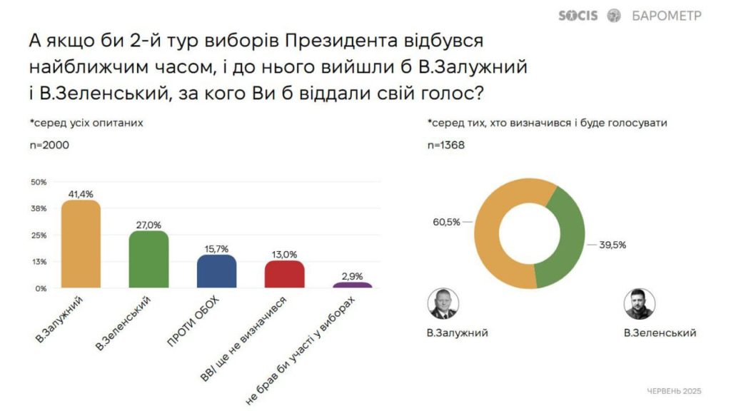 Исследование показывает, что за Залужного готовы проголосовать 41,4% респондентов, тогда как за Зеленского — только 27%.