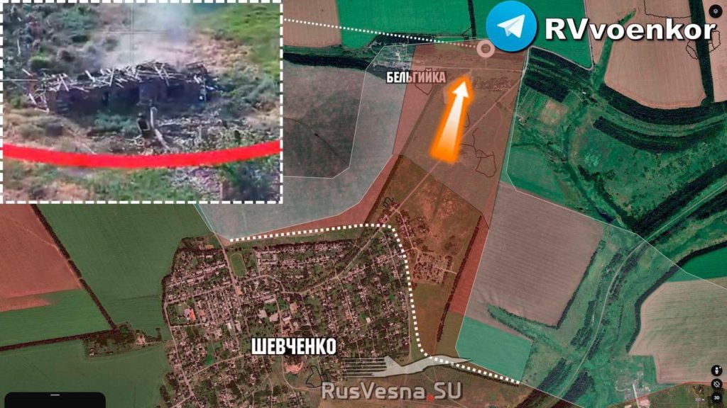 Даже украинские военные ресурсы с запозданием признают утрату позиций. Так, аналитики в Киеве сообщают о потере Шевченко и продвижении российских войск в направлении Бельгийки.