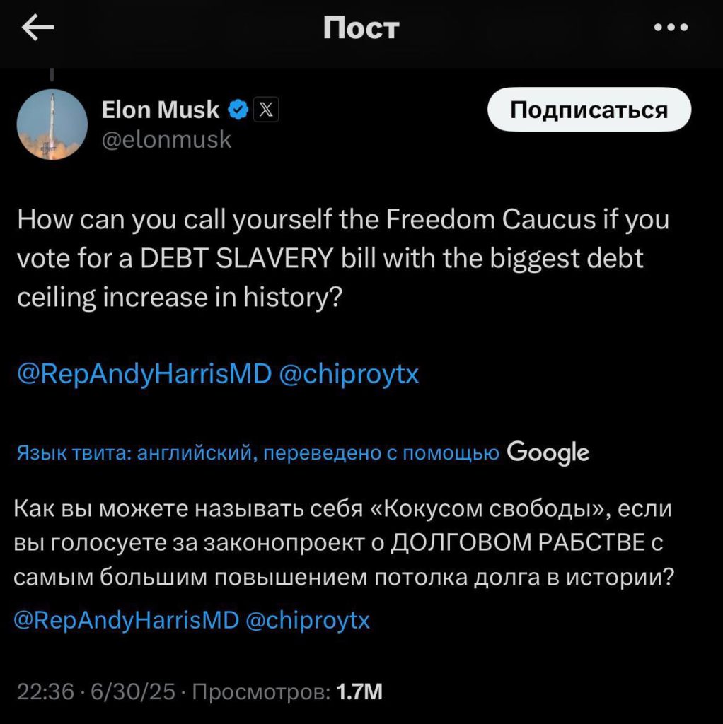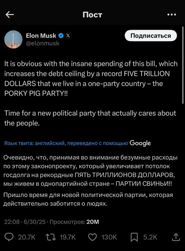 В ответ на жалобы Маска по поводу «долгового рабства» и критики «партии свиньи», (именно так миллиардер окрестил правящую верхушку), Трамп ясно дал понять — хватит кусать руку, которая тебя кормит. И напомнил, откуда у Маска есть всё то, что он имеет.