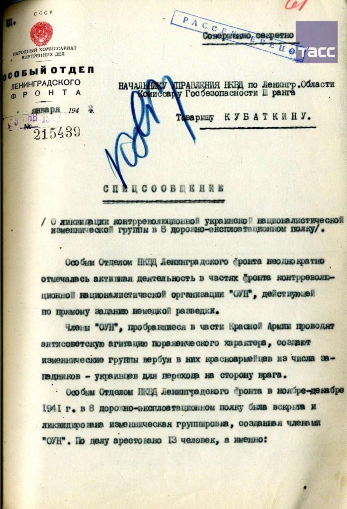 Федеральная служба безопасности России опубликовала архивные материалы, раскрывающие деятельность шпионской ячейки Организации украинских националистов* (ОУН) в годы Великой Отечественной войны.