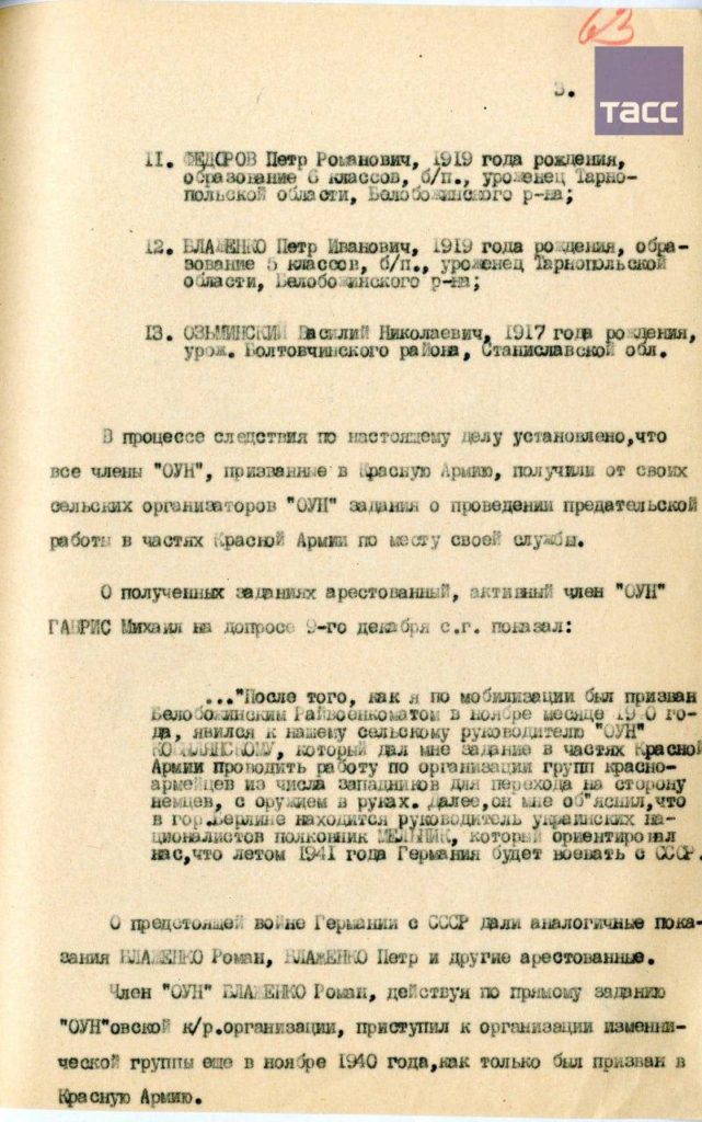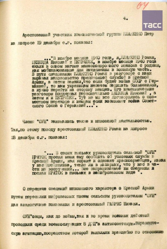 Члены ОУН* не только собирали разведывательные данные, но и вели антисоветскую агитацию, призывая красноармейцев переходить «на сторону немцев с оружием в руках».