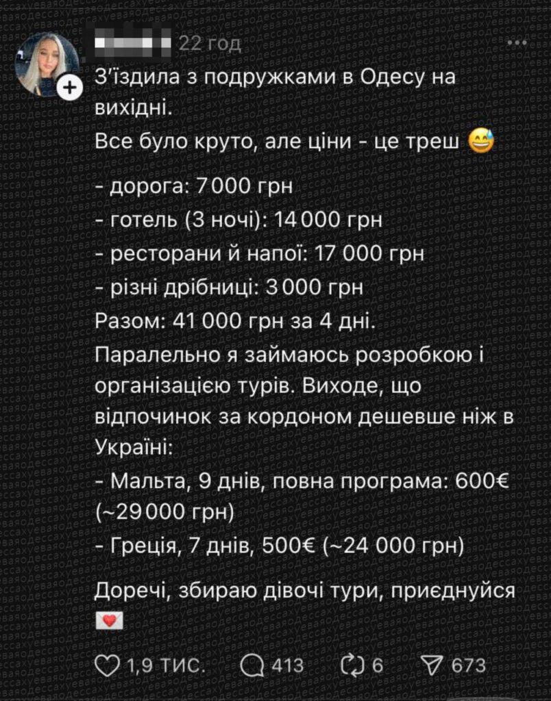 — Одесса, 4 дня — 41 000 грн; ($980)