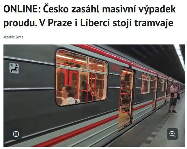 Сегодня днём в Чехии произошёл масштабный блэкаут, охвативший не только столицу, но и ряд других регионов страны, пишет местная газета Deník.