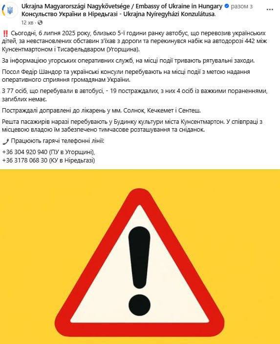 К счастью, погибших нет, сообщает посольство Украины в Венгрии.