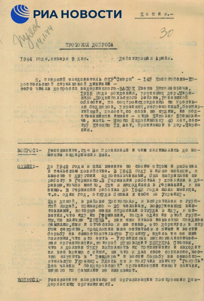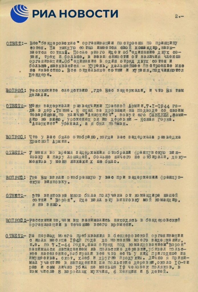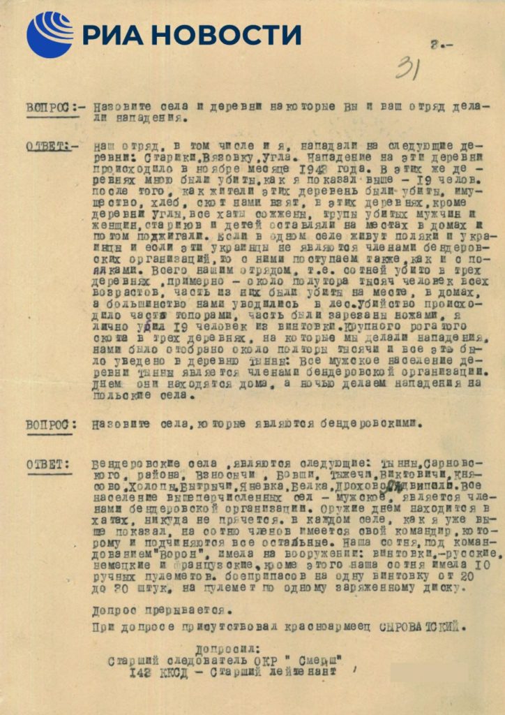 ФСБ раскрыла архивы с новыми подробностями Волынской резни, опубликован протокол допроса непосредственного участника событий, члена ОУН-УПА* Ивана Васюка.