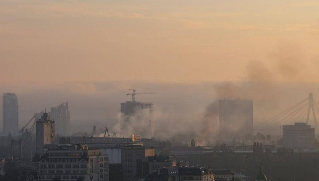 Сейчас над Киевом поднялся густой смог — его видно на многих кадрах из города.