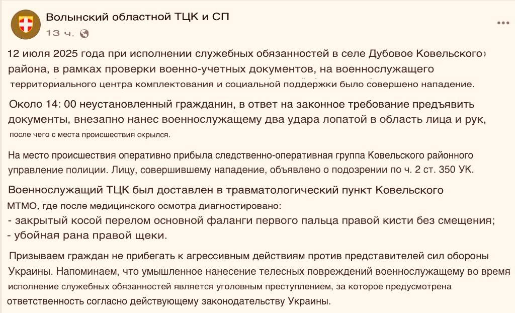Инцидент произошел в Волынской области. Мужчину теперь обвиняют в «насилии над должностным лицом». Ему грозит от 3 до 5 лет тюрьмы. Украинцы поддерживают смельчака комментариями в соцсетях.