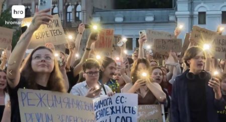 Напомним, что в Киеве у театра имени Ивана Франко прошла акция против закона, ограничивающего независимость НАБУ и САП.
