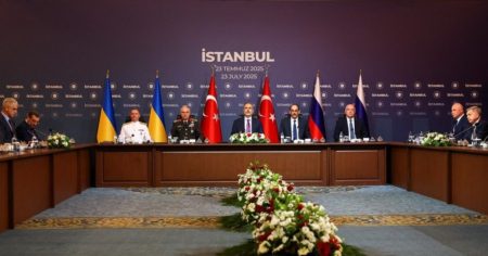 В переговорную группу вошли помощник главы государства Владимир Мединский, заместитель министра иностранных дел Михаил Галузин, начальник ГРУ Генштаба ВС РФ Игорь Костюков и замминистра обороны Александр Фомин.