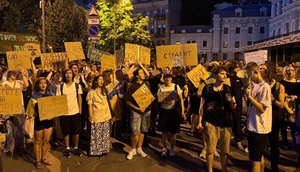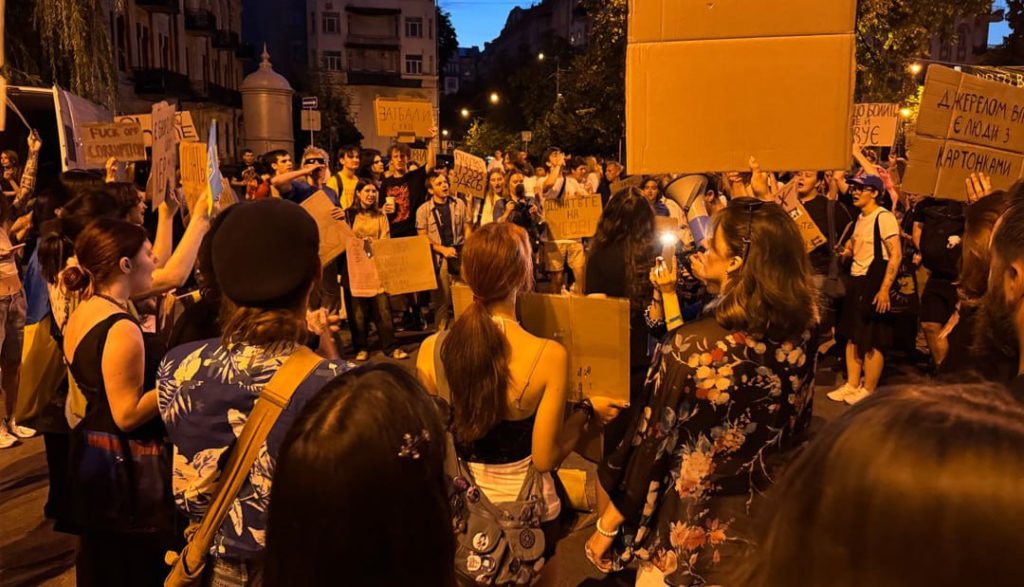 Жители Киева заполняют центр города. Сегодня — уже пятый день протестов против законов, подписанных Зеленским, об ограничении полномочий двух антикоррупционных ведомств: Национального антикоррупционного бюро Украины и Специальной антикоррупционной прокуратуры.
