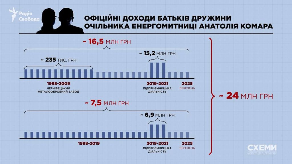 Кроме того, выяснилось, что Комар пользуется дорогим Mercedes S-class, который его семья арендует у частной фирмы по цене, в 16 раз ниже рыночной. Его дочь получает платное образование за рубежом: сначала в частной школе на Кипре, а теперь – в Королевском колледже в Лондоне. Эти факты, как отмечают журналисты, отсутствуют в декларации чиновника.
