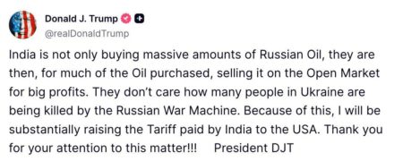 Индийское телевидение высмеяло Трампа, за его требование перестать покупать нефть у России.