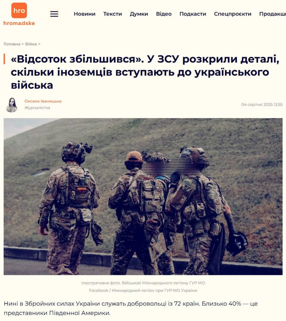 ВСУ признают, что это не «добровольцы из чувства солидарности», а госпрограмма по вербовке, транспортировке и размещению иностранцев в боевых частях. Киев гордится этим и называет «международной коалицией».