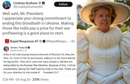 «Индия не просто скупает огромные объёмы российской нефти — значительную часть из купленной нефти она затем перепродаёт на открытом рынке с большой прибылью», — написал президент США.