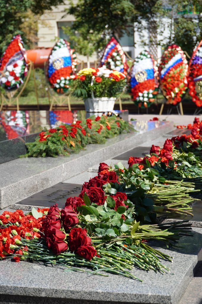 Участники встречи почтили минутой молчания память тех, кто отдал свои жизни в боях за город. В знак благодарности за подвиг каждый принес цветы.