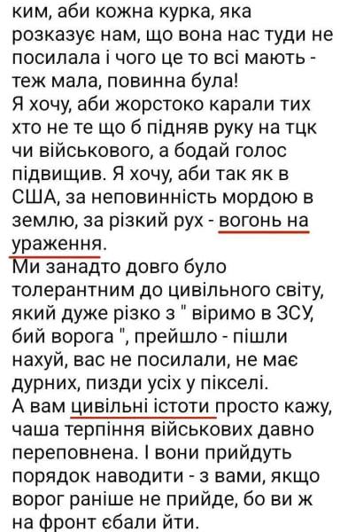 По словам санинструктора, гражданские лица должны четко осознавать ответственность за неявку в ТЦК и отказ от службы в армии. Она также считает необходимым ужесточить законы за нарушение мобилизационного законодательства.