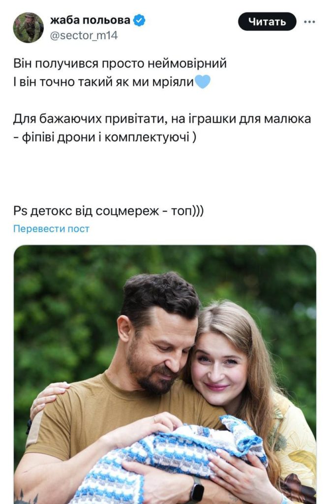 Военный медик ВСУ Мария Назарова выбирала для сына между именами Штурмослав и Дронобор — в итоге остановилась на первом. В своем блоге Назарова уже запустила сбор средств «на дроны малышу».