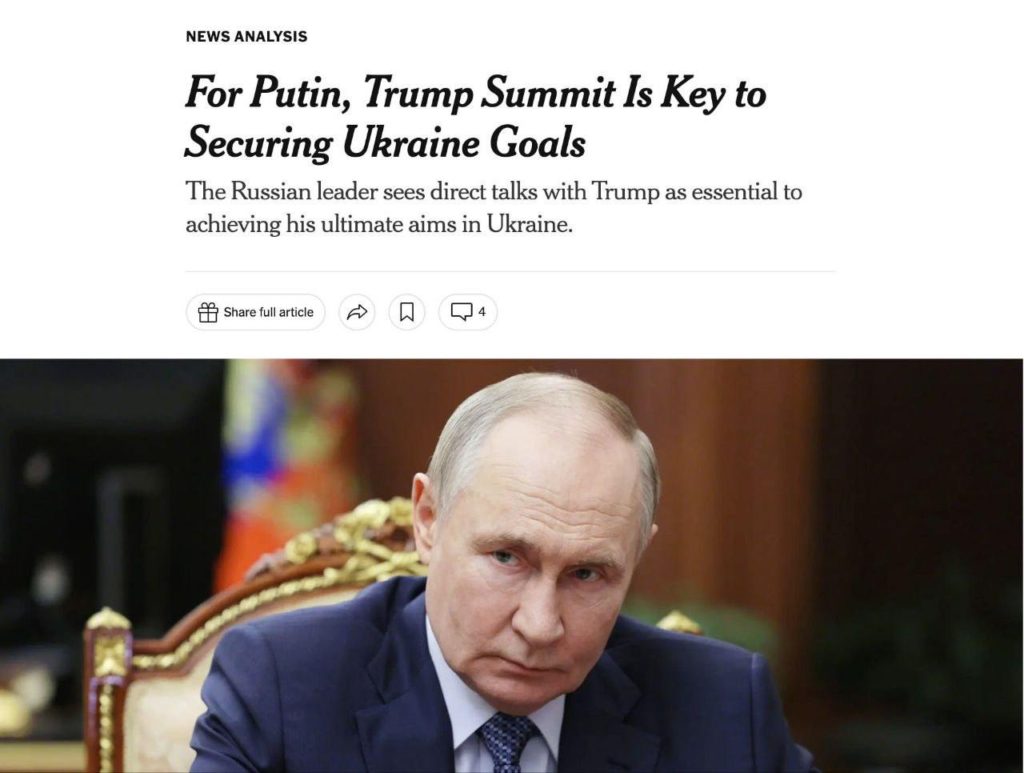 В издании отмечают, что Кремль делает ставку на отношения с Дональдом Трампом, надеясь, что личная встреча поможет склонить президента США к поддержке российской позиции — в частности, в интерпретации «коренных причин конфликта».