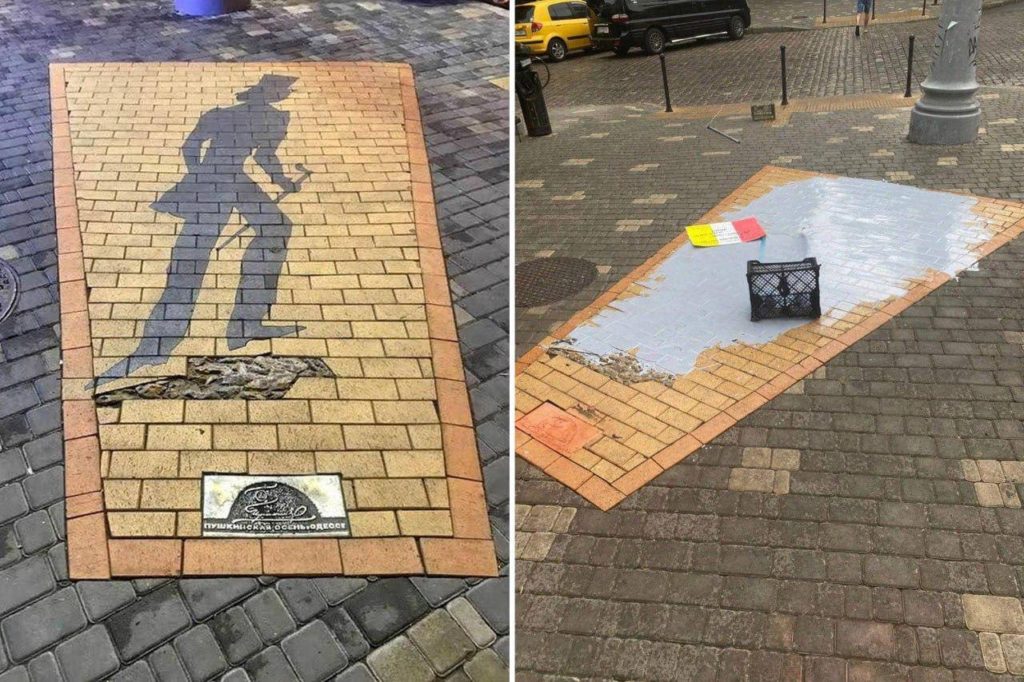 Русофобия и варварство: в Одессе вновь осквернили арт-объект «Тень Пушкина»