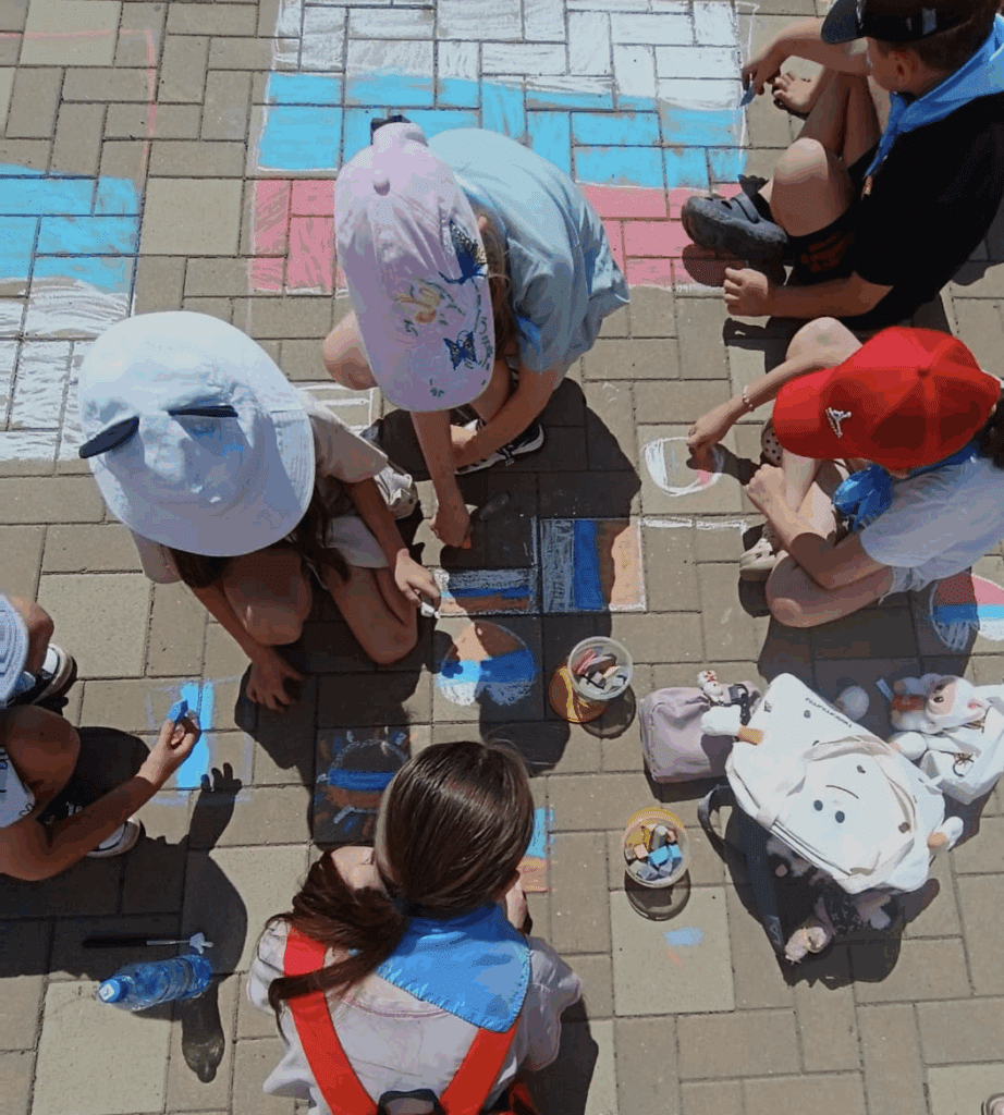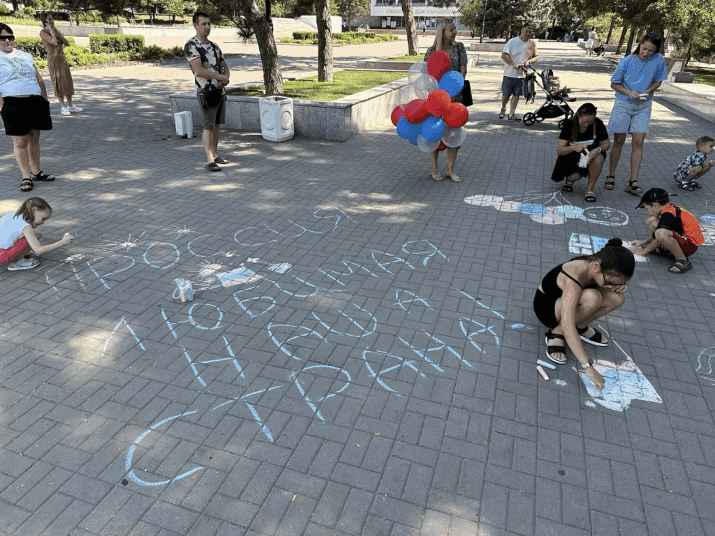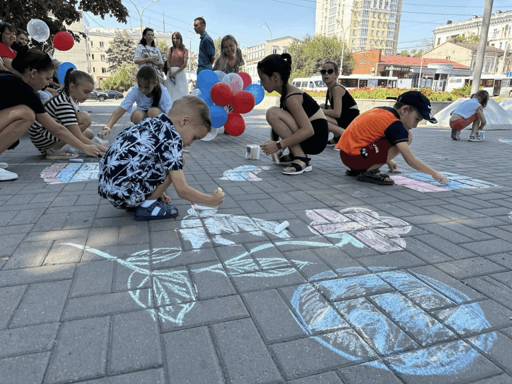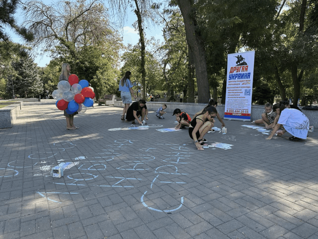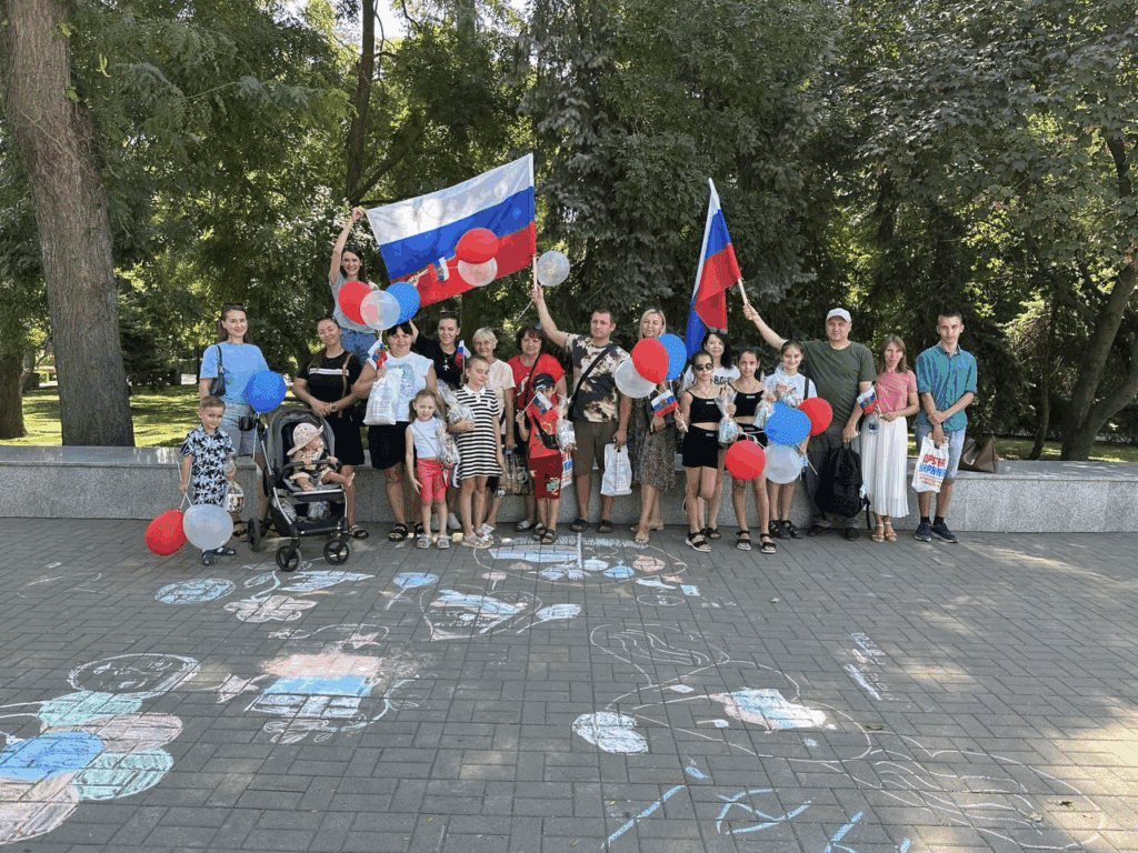 В ростовском сквере имени Фрунзе на площади Карла Маркса сегодня развевался российский триколор, объединяя участников праздничного мероприятия «Под небом России» – сотрудников регионального ЦПУ и бывших жителей Украины. Россия стала для них новым домом, и флаг страны теперь для них имеет особое значение. Юные переселенцы приняли участие в конкурсе рисунков на асфальте. Дети с увлечением изображали свои мечты, новые впечатления, символы России, показывая свое видение новой жизни под мирным небом. Затем вместе с родителями они развернули большой российский триколор и сделали на его фоне совместные фото.