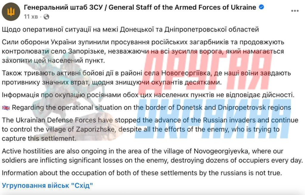 Этим утверждением Генштаб попытался опровергнуть ранее появившуюся информацию военного ресурса Deep State о взятии российскими войсками под контроль этих населенных пунктов.