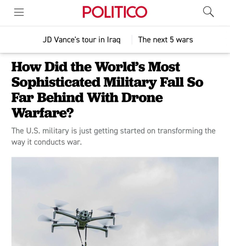 Американская армия отстаёт в сфере беспилотных технологий, где Россия и Украина демонстрируют куда более быстрый прогресс.