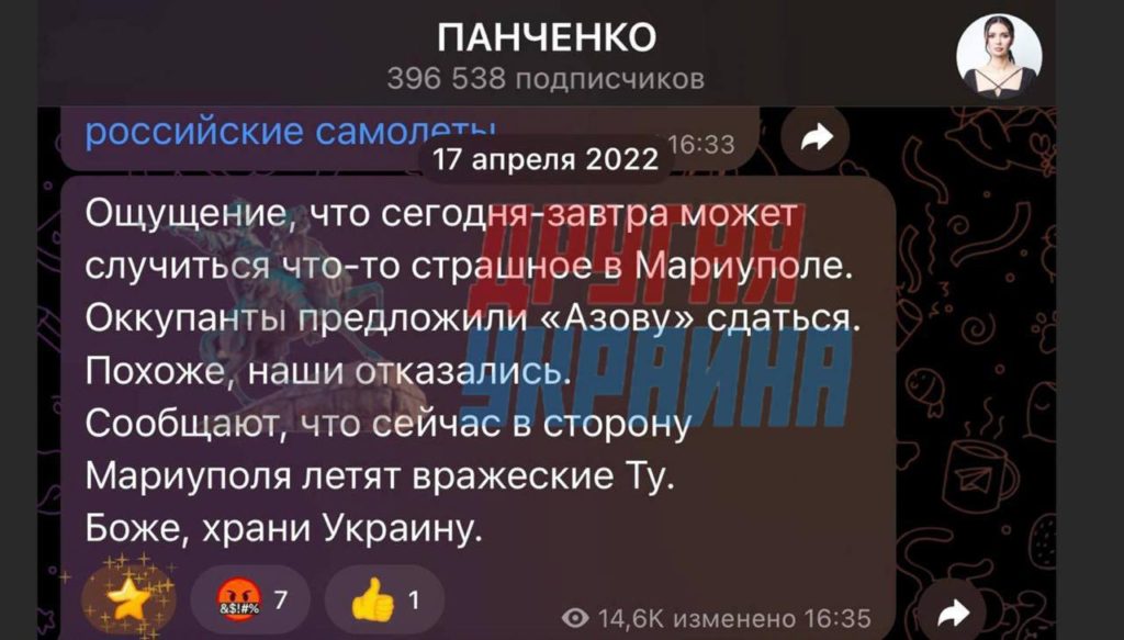 Неизвестно, рассказала ли она мирным жителям, что «Россия проиграла ещё 24 февраля, подписав приговор себе и своим адептам», о чем тоже писала в социальных сетях. Также остается неизвестным, как читатели и зрители Панченко относятся к ВСУ, когда сама Диана раньше умоляла Бога их оберегать.