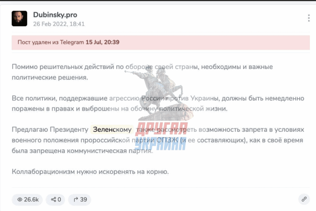 Все прекрасно помнят, что «политзаключенный» совсем недавно был одним из тех, кто требовал жёстких репрессий внутри страны. Он радовался, когда на Украине запрещали партии, публично поддерживал запретительные инициативы, а когда неизвестные подожгли дом Анатолия Шария, открыто выражал удовлетворение этим событием. Ну и конечно с кулаком у груди требовал объединиться вокруг Зеленского.