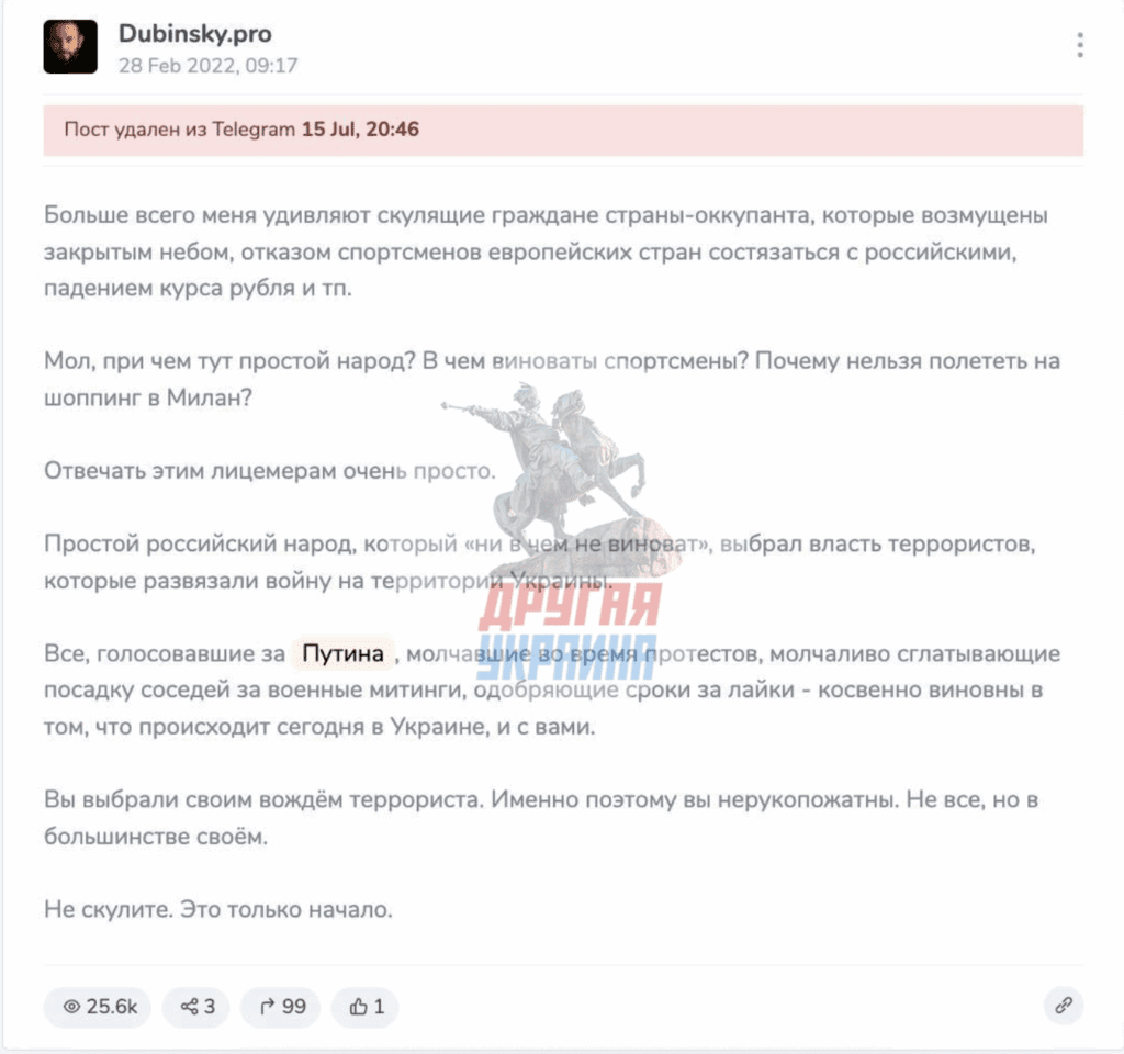 Видимо, у него было действительно «искреннее» желание, рассказать о трагедии, о которой знают уже практически все. Напоминаем: Дубинский — человек, который долгие годы активно поддерживал киевский режим. Сейчас сидит в элитной камере с телефоном и выходом в интернет.