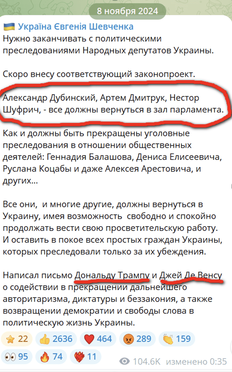 Вот один из «обиженных» Е. Шевченко сидит в СИЗО. За него уже беспокоился Госдеп США. В своем телеграм-канале Шевченко еще год назад сформировал основной костяк проекта и схему возвращения в украинскую политику через помощь американцев.