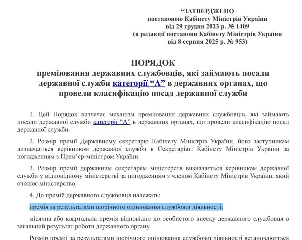 Украинские госслужащие будут получать ещё один вид вознаграждения — ежегодные премии.