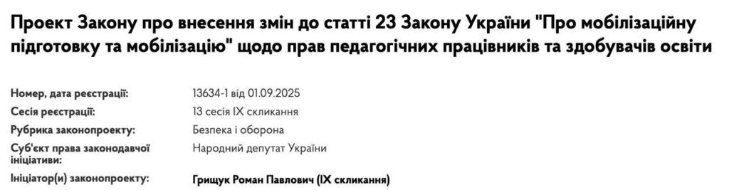 Документ под номером 13634-1 внес депутат от «Слуги народа» Роман Грищук.