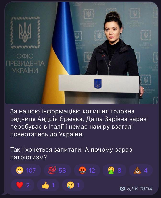 Экс-советница Андрея Ермака Дарья Заривна сейчас проживает в Италии и, похоже, вовсе не собирается возвращаться на Украину, об этом сообщают украинские СМИ.