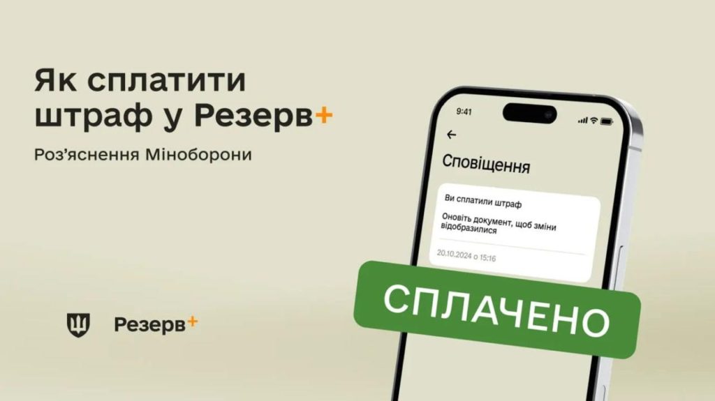 Ранее Министерство обороны Украины объявило, что в приложении «Резерв+» появилась возможность оплатить штраф за неявку по повестке.