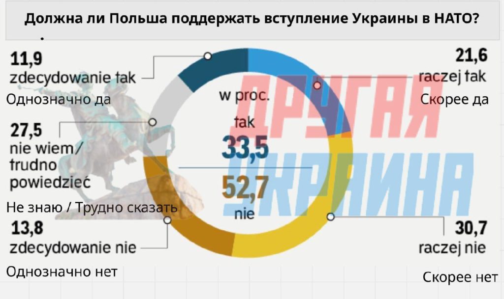 Большинство жителей Польши (53%) выступили против вступления Украины в альянс — об этом свидетельствуют данные опроса IBRiS.