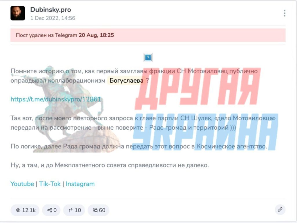 Ранее журналистка Диана Панченко включила Дубинского в список «политпреследуемых» на Украине. Несмотря на свои прежние заявления и открытую поддержку действующей преступной власти, теперь бывший нардеп всячески поддерживает образ одного из наиболее гонимых со стороны режима Зеленского.