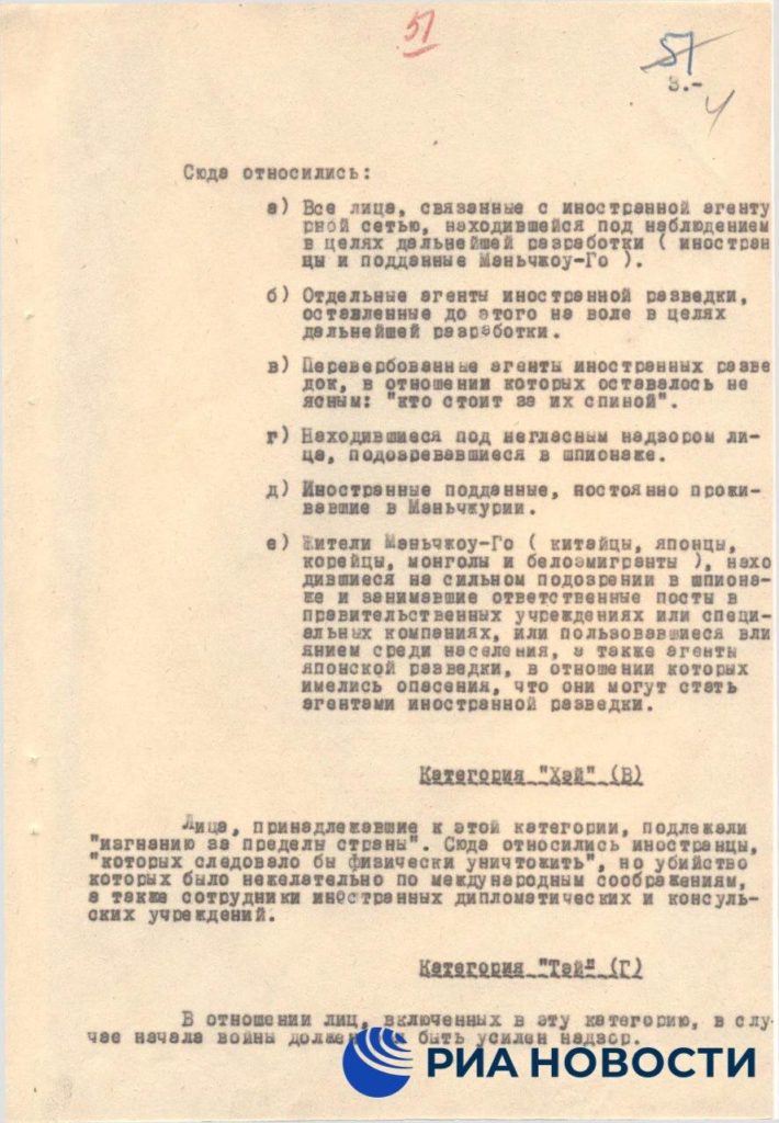 Федеральная служба безопасности обнародовала архивные материалы, в которых раскрываются подробности жестоких планов милитаристской Японии в годы Великой Отечественной войны.
