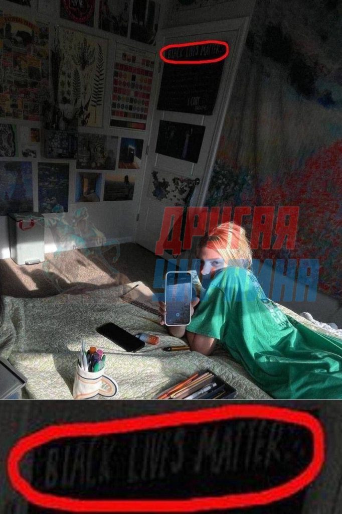 В Сети опубликовано фото, где в спальне Ирины Заруцкой, зарезанной чернокожим бездомным, висел плакат с лозунгом «Black Lives Matter».