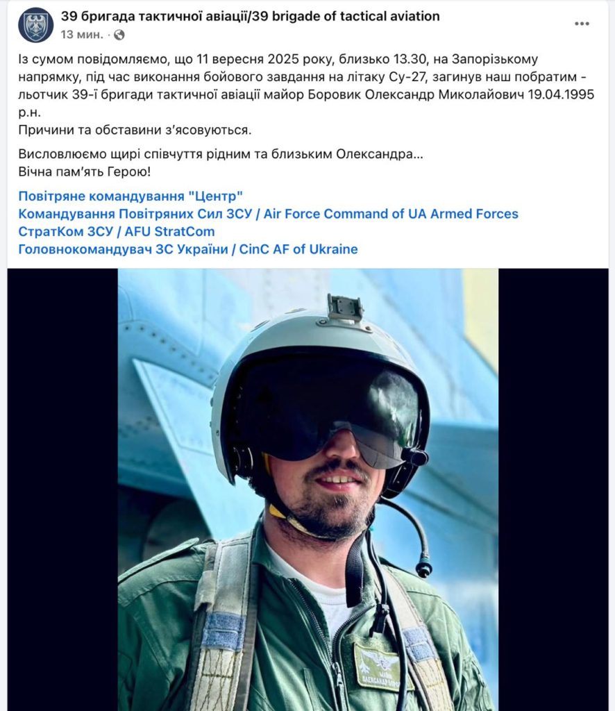 Су-27 Воздушных сил Украины разбился на Запорожском направлении, лётчик погиб, сообщили в командовании ВСУ.