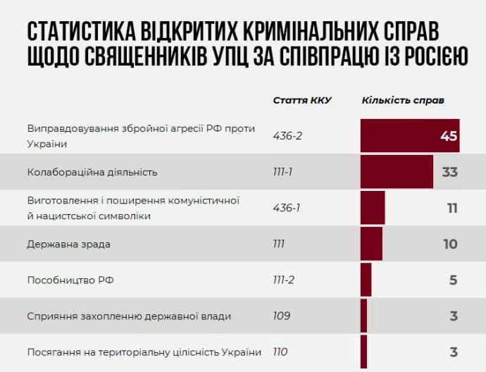 Служба безопасности Украины с начала войны открыла 180 уголовных производств в отношении священнослужителей Украинской православной церкви. Среди фигурантов — 23 архиерея.