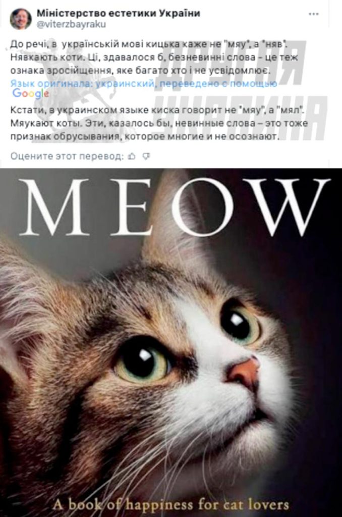 «Деколонизаторам» не понравилось мяуканье. Один из таких «гигантов мысли» заявил, якобы на самом деле украинские коты делают не «мяу», а «няв». А звук «мяу» он назвал «признаком обрусения».